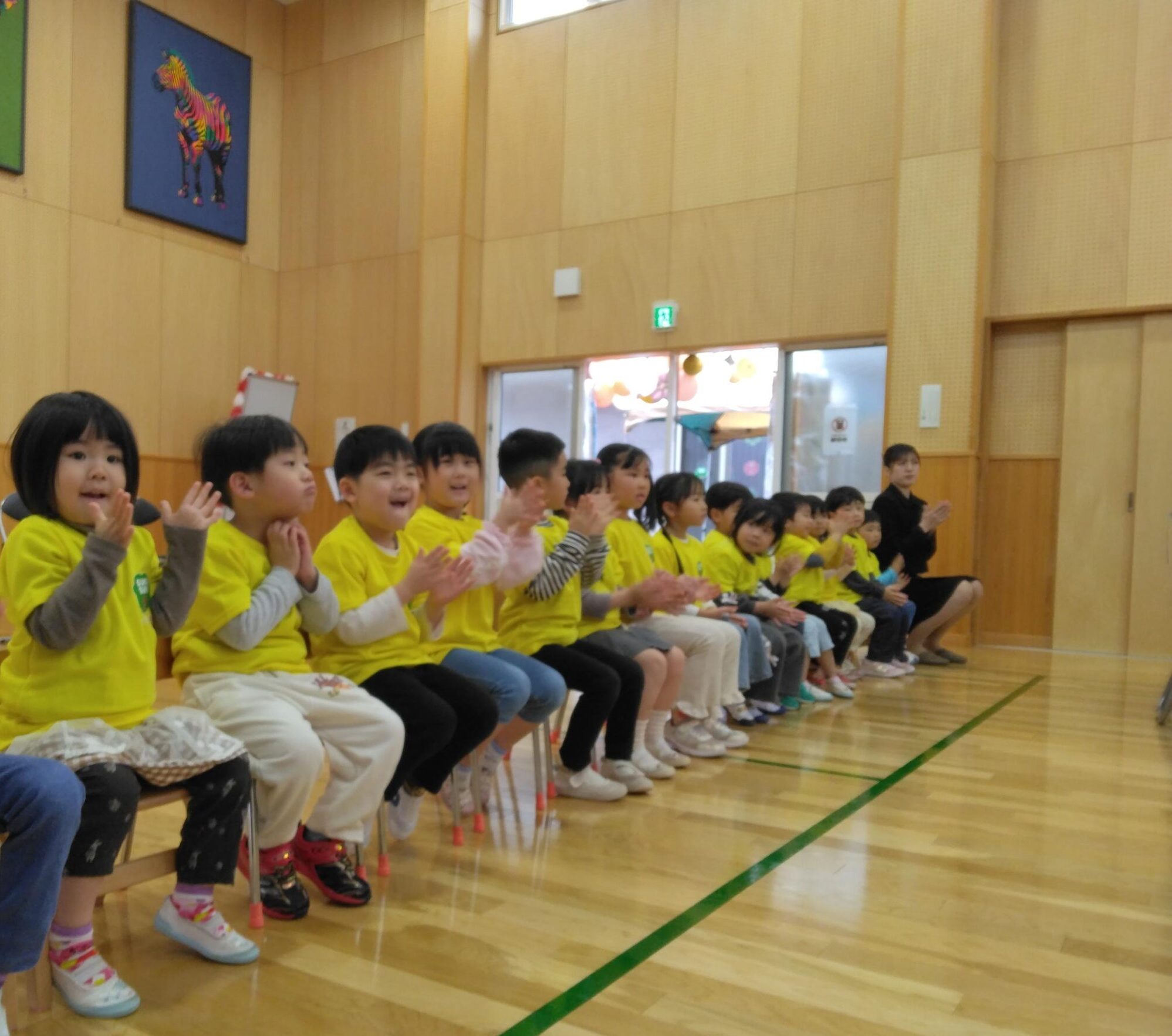 在園児が「せんせいとおともだち」を歌ってお祝いしました。